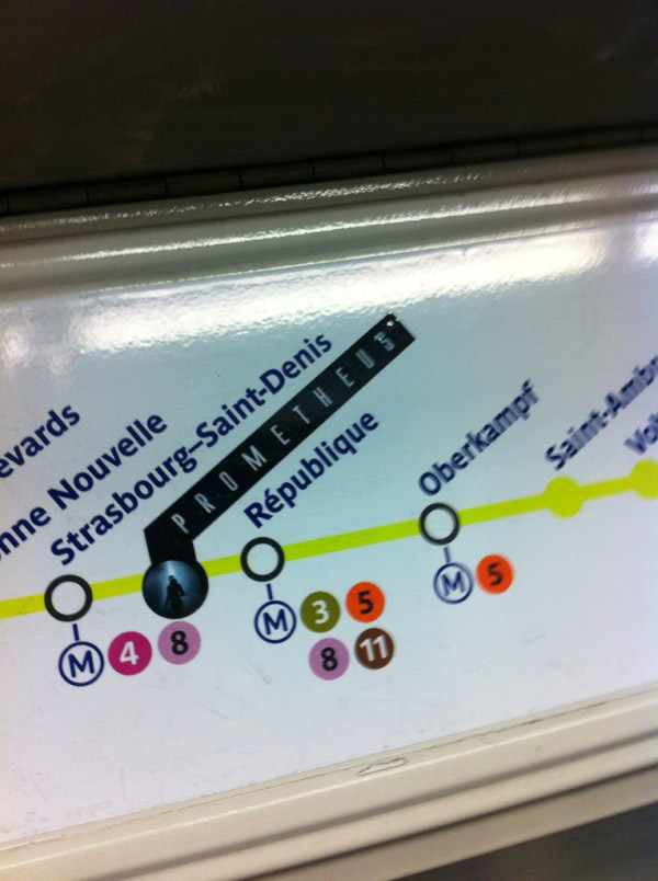 Here’s something a little different done by 20th Century Fox for the international release of Ridley Scott’s Prometheus. Our friend Anton Volkov has tipped us off to an abandoned metro station in Paris that has been transformed to look like the mysterious cave we’ve seen in the film’s trailers. Get the details after the break.