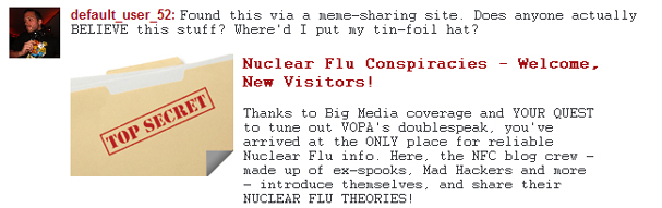 Facebook and Discovery Have Literally Gone “Viral” Scott Caldwell, July 20, 2010July 20, 2010 Look out Farmville! You are about to have your ass kicked by something so much more real than housing a turtle, or finding gold in your corn field. Granted, I have no idea what you do in Farmville, because I block that stupid thing, but what I do know is, The Discovery Channel, in anticipation of the season premiere of The Colony, has teamed up with Facebook and Campfire to bring you what could quite possibly, scare the piss out you. Keep reading to find out more. Normally, Facebook is used to check out what your friends did over the weekend, or maybe to view pictures of your newborn nephew, and even to plan high school reunions. But what if you could use it for so much more? What if you could use Facebook to save yourself, and those around you? Well, now you can. Or you can at least TRY to save your friends. With the help of Campfire (known for its award winning campaign for True Blood and Discovery’s Shark Week), picture Facebook as your major source of information, outside contact, and news. This is what happens when the outbreak begins. When you sign up at JoinTheColony, you are embarking on something so much more exciting than the typical update from your friend. You are waiting to hear if they are ok. You are waiting to hear if they are still there. Go through all of the pieces that start with an outbreak and finding out exactly what is going on withe pandemic. With everything that current in the world, this comes at the perfect time of awareness and known fear. Even the stars are making the trek to inform:Join The Colony from Campfire on Vimeo.What you in read in this article cannot, in any way, show you what you will get out of the Facebook simulator. They also have you covered if you chose not to have a Facebook page, as you can still view the, albeit, less personalized viral outbreak, with all the detail. Everything that you see, hear, and read, all leads up to the July 27th premiere of The Colony on The Discovery Channel, which focuses on the survival. To quote Campfire – ‘ “Viral” marketing has never felt so real’ I want you to sign up, and get yourself involved because I want to hear about YOUR experience. I want to know what this feels like on your side. How does it feel to be left alone…… ARGs & Campaigns News Social Networks Viral Marketing Viral News CampfireFacebookJoin The ColonySocial NetworkingThe ColonyThe Discovery ChannelViral CampaignViral Outbreak
