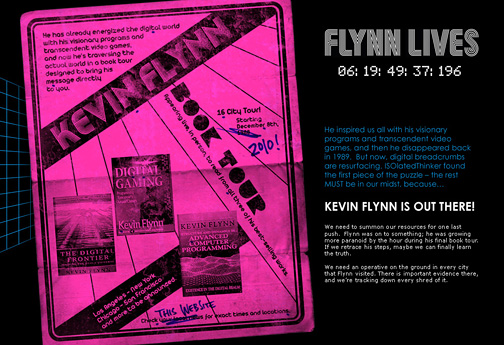 “Tron Legacy” Viral Campaign’s Final Countdown Michael Lee, December 1, 2010December 1, 2010 After weeks of Internet viral activity, the Tron Legacy viral campaign hits the streets once again. We are only 16 days away from the big release and now the two-year viral campaign is coming to a close. The FlynnLives website has been updated with a message saying “The Final Countdown” has begun. If players manage to figure out the cryptic puzzle they will be taken to a new page. To find out what this page contains you will have to hit the jump.The site takes you to flynnlives.com/gygax/ where you are to solve a difficult puzzle (aren’t these puzzles always difficult though?) containing two large pentagons and six smaller pentagons. Fortunately the people over at unfiction forums have solved the puzzle and it revealed a new website flynnlives.com/digitalpulse/. As a reward for solving the cryptic puzzle the website unveiled a new 16 city viral marketing campaign and a countdown leading up to December 8th, what this campaign has in store for us is still unknown, but you can be sure that the movieviral team will be out on the field for this huge update. The site also contains a flyer for Kevin Flynn’s book tour that has been revised for 2010. If you still wanted to solve the puzzle, wikibruce says you have to apply the difference effect in order to match the patterns.“We need an operative on the ground in every city that Flynn visited. There is important evidence there, and we’re tracking down every shred of it.” Be sure to check back here at movieviral or at flynnlives.com/digitalpulse for any updates concerning the Tron Legacy Viral Campaign. ARGs & Campaigns Viral Marketing Flynn LivesTron Legacy
