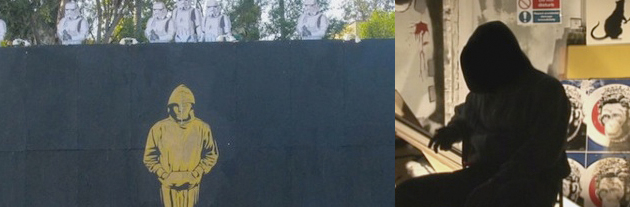 sorry, but that is most defiantly not banksy. first of all the humor is ham-fisted, plus look around the storm troopers. it’s discolored, indicating that this was a paste job -not stencil.