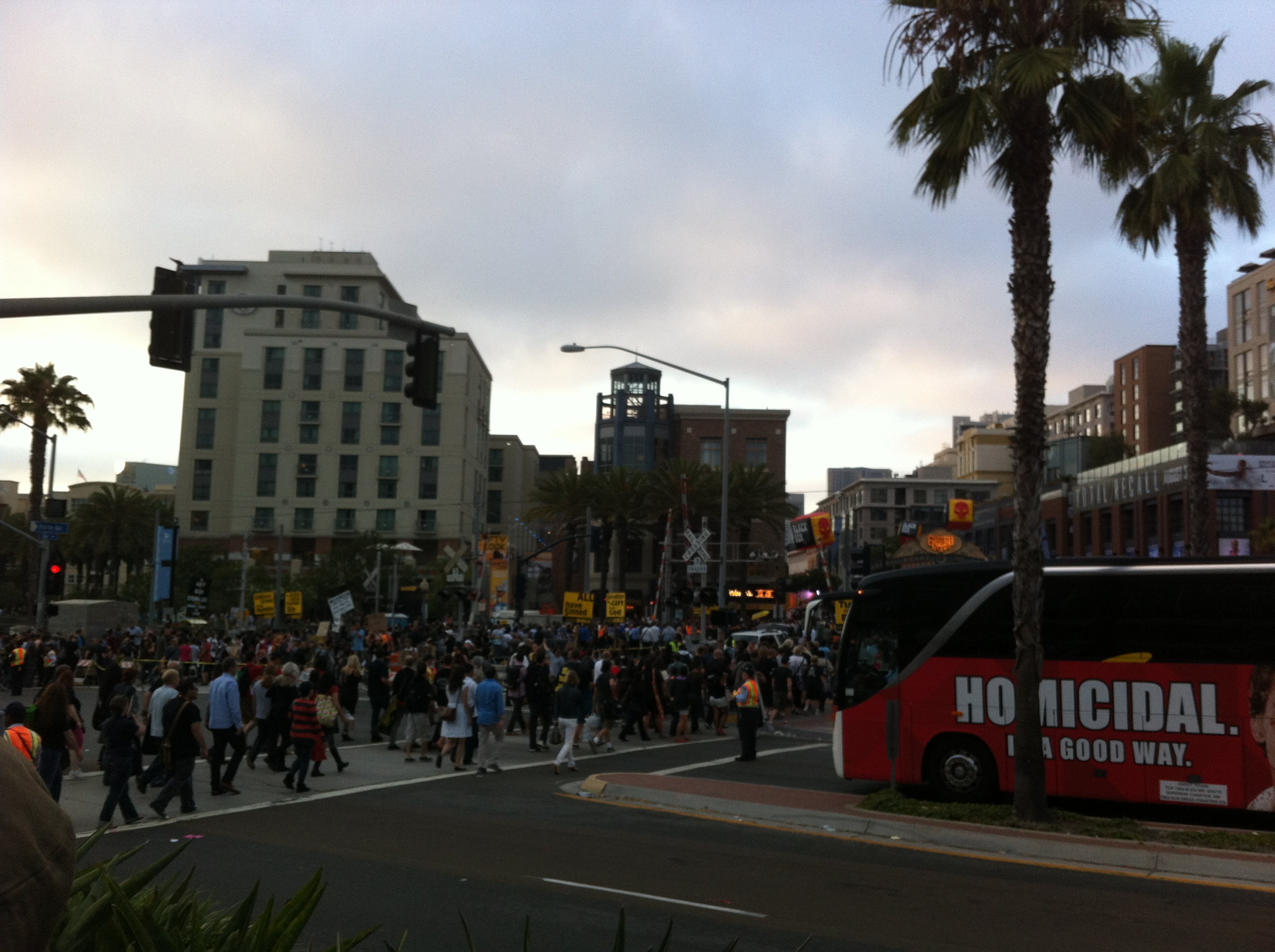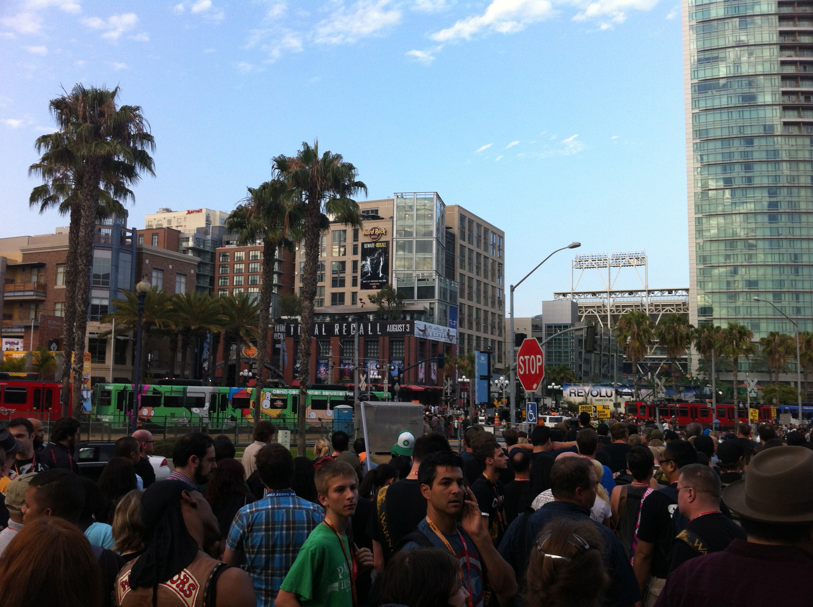 Comic-Con 2012 Gallery And Final Thoughts Dan Koelsch, July 18, 2012December 9, 2012 San Diego Comic-Con 2012 is over, and we must all get on with our boring lives. However, before we do that, let’s take a look back at this year’s “celebration of popular arts”. After the break, I’ll have a few final thoughts, as well as our second stream-of-consciousness photo gallery (see my first one here). This was my third time both going to Comic-Con and covering for MovieViral. While I technically covered it alone, I was once again aided greatly by my friends Josh Butler and Jackie Tuttle. I met Josh at my first Comic-Con in 2010, as he was a reader of the site, and he has invaluable since. It’s a great challenge to report on the convention alone for many reasons. There’s over 200,000 attendees, not to mention exhibitors, so getting anywhere and doing anything is a great struggle that is immensely time consuming. There’s also a lot of walking and waiting involved, including camping overnight for a seat in Hall H (which is where Josh and especially Jackie come in).Despite these challenges, I’d like to believe we had some good coverage this year. We dealt with all the big viral pushes like The Bourne Legacy and Prometheus, and we either live-blogged, live-tweeted, or recapped a good portion of the Hall H panels. I even got a few unique interviews to spice things up, and of course there are my random assortment of photos.That being said, I want to do better. Next year, we are making a major effort to send one or two more of our writers to the convention, which will allow us to cover every Hall H panel, as well as have more interviews and cover more of what’s going on around the convention and on the exhibitor floor. Now that we have three years experience, we’re putting together some plans to maximize our efforts overall next year, and hopefully you’ll be able to see these changes in our coverage.So, how was the convention this year overall? 2010 was pretty crazy, 2011 was definitely a slump year (at least in terms of movies), and 2012 saw a major improvement. Saturday’s line-up in Hall H alone was quite impressive, and the best Hall H day I’ve ever attended. We started off with Django Unchained, and finished up with Warner Bros./Legendary and Marvel, all of whom brought great footage and spectacle. My favorite panel was Man of Steel, of course, given my notorious love for Superman. The teaser made me feel like this finally the Superman movie the world needed to see. Overall, I was impressed with all the footage I was able to see at Comic-Con. The only panel that was a letdown for me was Game of Thrones, as it was a bit boring and they teased footage and pulled the rug out from fans.Outside the Con, there were a few exciting moments like the screenings for Dredd and Marvel’s short film Item 47. Otherwise, it seemed like the typical fare, though I didn’t have a chance to explore as much as previous years. The Tumbler tour came to town, so it was fun to see all the different Batmobiles.If you went to Comic-Con, let us know what parts were your favorite in the comments below. Follow all our Comic-Con coverage here. Otherwise, we’ll see you next year! Comic-Con Conventions Events Comic-Con