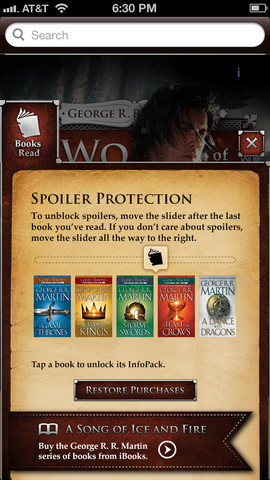 Featured App: George R. R. Martin’s A World of Ice and Fire Caleb Hamilton, December 5, 2012December 5, 2012 There are a lot of characters in George R.R. Martin’s A Song of Ice and Fire books and it can be challenging trying to keep track of them all. This is also true for the HBO adaptation of the books, A Game of Thrones. There are a lot of online resources that you can consult, but they may end up spoiling a character’s storyline. Well Random House Books has created an app that can help you find out more about a character without spoiling their death in the next chapter. Find out more after the jump!Random House has made a smartphone app called George R. R. Martin’s A World of Ice and Fire, which is a guide to all things A Song of Ice and Fire. It’s quite large, containing information on 540+ characters, 380+ places, the major houses and interactive maps! So make sure you make space on your iPhone!The app comes with several great features for any fan, including anti-spoiler functionality that you can customize based on where you are in the book cycle. There is also new text written by Elio M. Garcia, Jr. and Linda Antonsson of Westeros.org, the primary fan site for the A Song of Fire and Ice books.Keep in mind that even though the app is free, the information is not. You can buy “InfoPacks”, one for each book. However, when you download the app, you get 8 POV characters from A Game of Thrones as well as interactive maps of the North and South. George R. R. Martin’s A World of Ice and Fire is available on the Apple App Store for iOS devices! Apps Viral Marketing A Game of ThronesAppHBOViral marketing