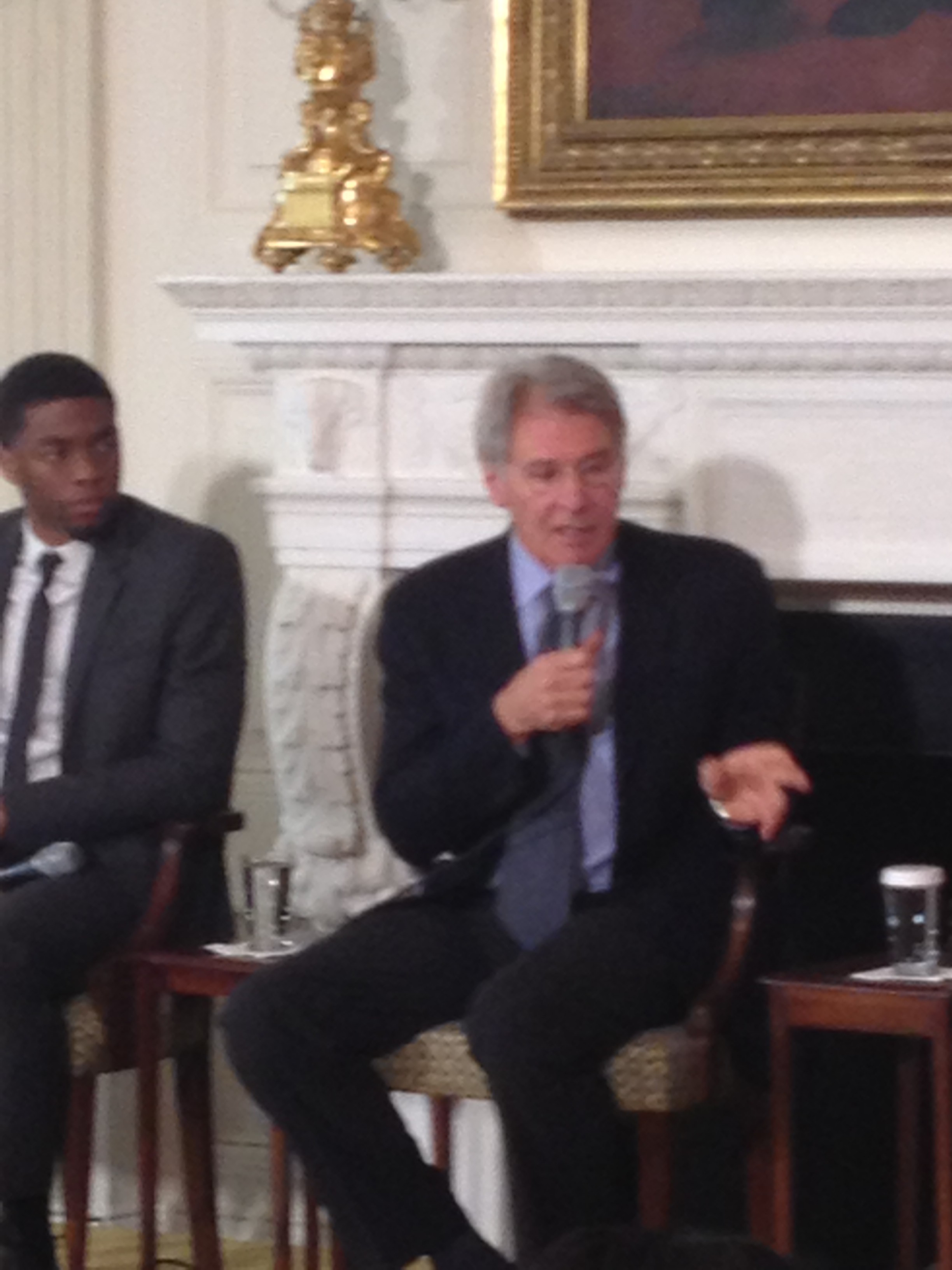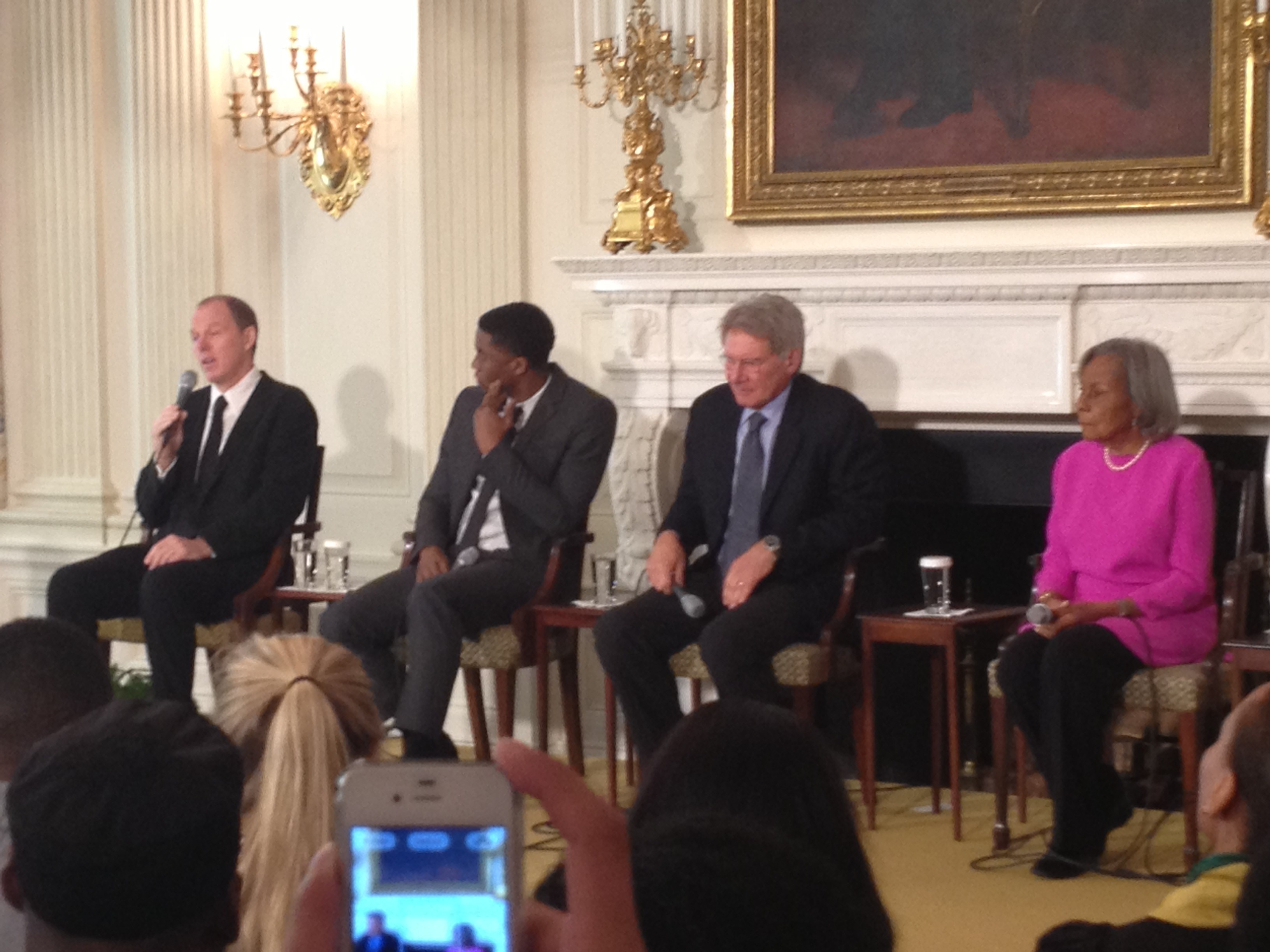 First Lady Michelle Obama Hosts Cast and Crew of “42” For Interactive Student Workshop at White House Caleb Hamilton, April 3, 2013April 3, 2013 42 is the upcoming biopic about the life of Jackie Robinson, the first African-American to play Major League Baseball. It stars Chadwick Boseman as Jackie Robinson, Harrison Ford as Branch Rickey, an MLB executive. Yesterday afternoon, the First Lady, Michelle Obama, hosted an interactive panel discussion with the members of the cast and crew as well as Rachel Robinson, Jackie Robinson’s widow. MovieViral was very fortunate to have been invited to this event. Check out pictures and video after the jump!The panel discussed the making of the film as well as the life of Jackie Robinson and the lasting impact he has had on the sport of Baseball and civil rights in the United States. Director and writer, Brian Helgeland talked about the writing process and working with Mrs. Robinson to get the story as accurate as possible. Chadwick Boseman, who portrays Jackie Robinson in the film discussed the impact the role has had on his life as well as Robinson’s legacy.Harrison Ford answered questions about whether he used personal life experiences in his role. And the lovely Rachel Robinson told many stories of her time with Jackie, sharing how they met, a bit about Jackie’s personality and his morals.While we planned to do a livestream of the event, we ran into some technical difficulties. Below you can watch the official recording of the White House livestream.The Obamas have been very supportive of the film and television industry over the last few years. The First Lady surprised viewers at this year’s Academy Awards, presenting the award for Best Picture. The First Family hosted a pre-Oscars screening of Beasts of the Southern Wild with a post-screening Q & A. And in 2010, the Steven Spielberg-and-Tom Hanks-produced HBO miniseries, The Pacific, was screened.In 2011, Variety wrote about the marketing (and politics) behind these screenings at the 40-seat Family Theater in the White House. In the article, author Ted Johnson said:“To get a movie screened there, especially one that is turned into an event, not only is an ego boost to filmmakers but can bring extra attention to a project and perhaps give it a boost at the box office.”Many thanks to the Press Office of the First Lady for the invitation to this wonderful event!42 opens in theaters on April 12th! Events News Social Networks 42Legendary Pictures