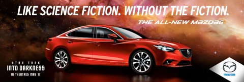 Massive “Star Trek Into Darkness” Domestic Marketing Push Starting Next Week! Caleb Hamilton, April 10, 2013April 10, 2013 Over the past couple of weeks, we’ve seen big international marketing operations for several of this summer’s big blockbusters, including Star Trek Into Darkness. TrekMovie has come across some information that suggests that Paramount is getting ready to shift its focus and start promoting the film more here in the U.S. and Canada, which includes plans for the long dormant Are You The 1701? viral site. Hit the jump to read (and see) some of what’s coming!Paramount has released four trailers for Star Trek Into Darkness, two are full-length international trailers while the other two serve as “domestic” teasers. Next week, we can expect the first domestic trailer for the film. The most recent international trailers included hidden links to a new poster, each in a specific country’s language. Be sure to look closely when watching the domestic trailer, as there could be hidden links to our official one-sheet. Below you can see the international one-sheet released on Monday and the “cinemosaic” version released today.Paramount is partnering up with various companies to help promote the film. We’ve already seen a lot from Esurance’s Facebook page, but next week Mazda will start airing co-branded ads that are Star Trek-themed featuring their new Mazda 6 and SkyActiv technology (what does that even mean, “SkyActiv”?).Mazda co-branded billboard.Paramount is also said to be getting traditional TV spots ready to start airing next week. Two have aired already, the Big Game Spot which aired during the Super Bowl and the “sneak peek” during the season finale of The Walking Dead (which you can see below).With all of this activity beginning next week, you can expect to see a lot of missions pop-up on the Star Trek app which has really served as a viral campaign for this film. We can speculate that you’ll be asked to scan a photo of the new poster or Mazda billboard. Perhaps even scan the audio of the new trailer among other things. The Star Trek app is also letting you buy tickets for IMAX 3D “Fan Sneaks” which will take place on May 15th at 8 PM.Do you remember Are You The 1701? We almost forgot about it too. Not much is known about the mysterious site that appeared late last year, except that this is the actual viral campaign for Star Trek Into Darkness. Expect to finally get notifications about the “hunt” hinted at when signing up on the website next week after the release of the trailer.Many exciting things are on the way, so be sure to check back as MovieViral will have all the latest information!Star Trek Into Darkness hits theaters in IMAX 3D May 17th! Source: TrekMovie Apps ARGs & Campaigns Social Networks Viral Marketing Viral News
