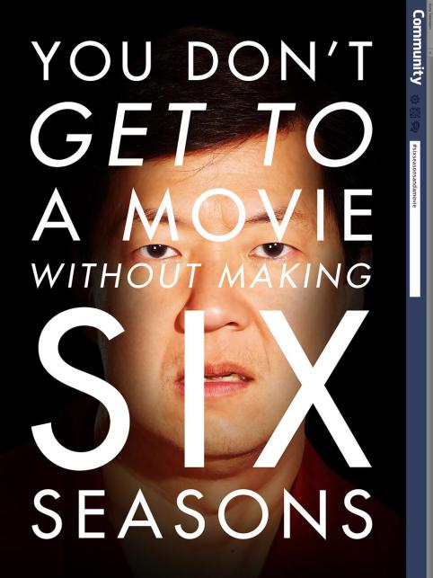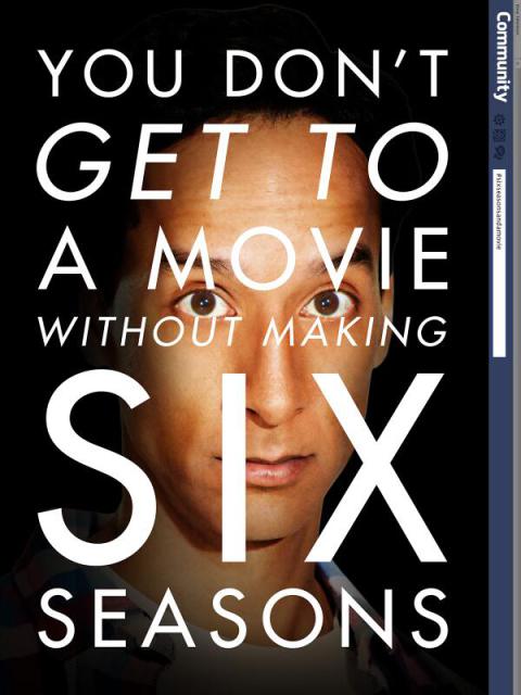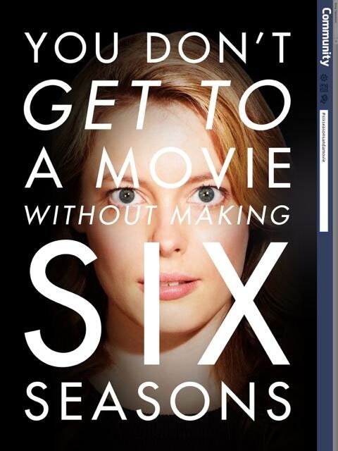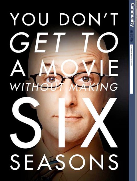 “Community” #SixSeasonAndAMovie Campaign Looks Hilariously Similar To “The Social Network” Michael Lee, April 22, 2014April 21, 2014 There was a time when fans of a sitcom or drama would send a massive amount of postage mail to TV studio execs to keep their show alive. But in an age of social media, we now have the much more cost-effective hashtags and memes to turn to. One praticular show that is currently on the bubble is Community. Having ending it’s fifth season just a few weeks ago, a new, and very timely, social media campaign to keep the show alive.You see, there is an ongoing joke what Abed (Danny Pudi) started when he was obbessed with another NBC short-lived superhero drama called The Cape. While Jeff Winger (Joel McHale) said it wouldn’t last very long, Abed quickly retorted: Six Seasons and a Movie.Since then, it has been fans hope that there would be six seasons, and possibly a movie. So that time is now.Gill See how fans are banding together to see their six seasons and a movie come alive after the jump.As Uproxx points out, no one can really source who started this campaign. The social media campaign bares some resemblance to The Social Network’s marketing campaign slogan: “You Don’t Get To Make 500 Million Friends Without Making A Few Enemies” As you can see in the gallery below Community’s slogan is: “You Don’t Get To Make A Movie Without Making Six Seasons.” Although we may never know who actually started this insane campaign, it should be noted that Alison Brie was helping make the push in the following tweet seen below.Community fans! We couldn't have done 5 seasons without you. Tweet #sixseasonsandamovie at 12pmPST every day this week to make noise for 6!— Alison Brie (@alisonbrie) April 21, 2014Source: Twitter: Joel McHale, Gillian Jacobs, Danny Pudi, Alison Brie, Ken Jeong, Yvette Nicole Brown, Jim Rash. ARGs & Campaigns Fan Made Work Viral Marketing Viral News Communitysixseasonsandamovie