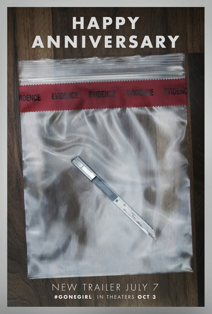“Gone Girl” Viral Marketing Campaign Has Evidence Of A New Trailer Michael Lee, July 5, 2014July 6, 2014 David Fincher has embraced the way films films are virally markerted, and as such each and every one of his films are promoted in unique and ingenious ways. The Social Network‘s marketing resembled Facebook’s website, while The Girl With The Dragon Tattoo had a razor sharp dark tone. Now the viral marketing for his upcoming film adaptation of Gone Girl has been ramped up. Following the film’s viral website and phone number that recited the first few pages of the novel of the same name, comes evidence of a new trailer. Literally, it’s evidence of a new trailer. Hit the jump to see what this evidence contains.[Updated: We have added three new posters from AwardsDaily, IndieWire, and HitFix. The original post follows.] The Huffington Post revealed the trailer earlier this week, which gives us the evidence of a new trailer being released on July 7.Gone Girl is a murder mystery centered on a husband, who despite his efforts of trying to find his wife, is accused of the murder.Opening in theaters on October 3, Gone Girl stars Ben Affleck, Rosamund Pike, Neil Patrick Harris, Tyler Perry, Kim Dickens, Patrick Fugit, Carrie Coon, and David Clennon. Directed by David Fincher and based upon the global bestseller by Gillian Flynn – unearths the secrets at the heart of a modern marriage. On the occasion of his fifth wedding anniversary, Nick Dunne (Ben Affleck) reports that his beautiful wife, Amy (Rosamund Pike), has gone missing. Under pressure from the police and a growing media frenzy, Nick’s portrait of a blissful union begins to crumble. Soon his lies, deceits and strange behavior have everyone asking the same dark question: Did Nick Dunne kill his wife? ARGs & Campaigns Viral Marketing Viral News 20th Century FoxBen AffleckCarrie CoonDavid ClennonGone GirlKim DickensNeil Patrick HarrisPatrick FugitRosamund PikeTyler Perry