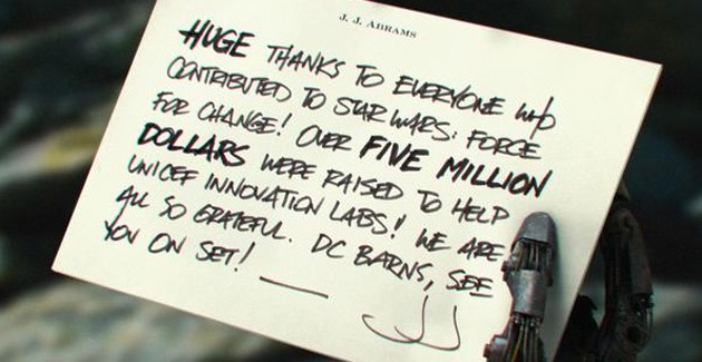 Latest “Star Wars Episode VII” Tweet Teases A Mysterious Droid Hand Michael Lee, August 11, 2014August 11, 2014 We’ve watched how Disney and J.J. Abrams have been marketing their Star Wars Episode VII “Force For Change” OMAZE UNICEF campaign for quite some time. With each new update, comes a very exciting tease, or hilarious video between two late night comedians, or a brand new look at a classic rebel fighter. But now that the campaign has come to a close, it is time to announce a winner, with the help of a cryptic hand.Bad Robot has tweeted the name of the winner plus how much was donated to their campaign. Hit the jump to check it out. #ForceForChange @starwars #EpisodeVII @omaze @UNICEF #uinnovate @UNICEFinnovate pic.twitter.com/pCAbhcjKxn— Bad Robot (@bad_robot) August 11, 2014Now a couple of things must be running through everyone’s head when they see this image. Whose hand does this belong to? Well it could be a droid, but based on what we have seen from the marketing campaign, I wouldn’t say that it belongs to any ordinary droid, in fact I might go as far to say that it belongs to Luke Skywalker. It may be a stretch, but the one thing that is making me unsure about it is the fact that it doesn’t have any skin on it. Of course if it did, it look like an ordinary hand. So my other guess would have to be is that it does belong to someone of great importance who is in need of this technology.But the fact that this campaign raised $5 million, shows that fans are willing to do anything to be a part of this mysterious project, and only they will know what Episode VII is about. That is until we see a trailer, photos, and more of course.Who do think this hand belongs to?Star Wars Episode VII opens in theaters on December 16, 2015. ARGs & Campaigns Social Networks Viral Marketing DisneyForce for ChangeLucasfilmOmazeStar Wars: Episode VII