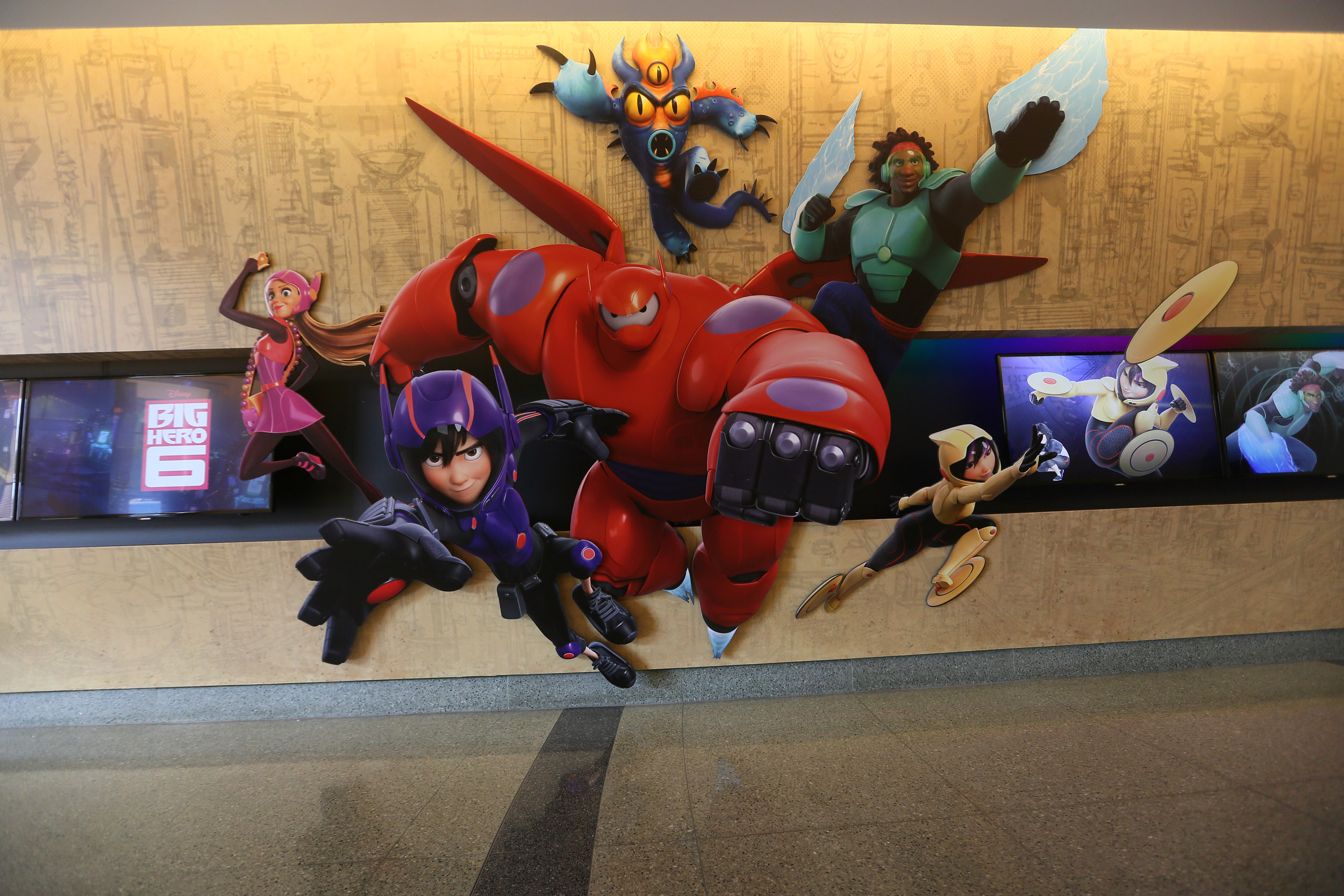 100 Fascinating Things You Need To Know About ‘Big Hero 6;’ Plus New Images Michael Lee, September 3, 2014April 15, 2015 A Disney animated Marvel film almost seemed to good to be true. But when Disney acquired Marvel Comics back in 2009, a collaboration of the two forces was inevitable. The two would announce Big Hero 6 as their first collaborative project. But the film wouldn’t be a direct adaption of the comic book of the same name, instead the title would serve as an inspiration for the film, which would have the same characters but a new story and a new setting. Directed by Don Hall (Winnie the Pooh) and Chris Williams (Bolt), Big Hero 6 features the voices of Maya Rudolph, James Cromwell, Damon Wayans Jr., T.J. Miller, Alan Tudyk, Jamie Chung, Genesis Rodriguez, Daniel Henney, with Ryan Potter as Hiro Hamada and Scott Adsit as Baymax. We were invited to visit Walt Disney Animation Studios in Burbank, CA a few weeks back to learn about the film and watch about 30 minutes worth of footage, both finished and unfinished. While we saw some of the latter, what we saw was very promising and had that magic Disney touch we all know and love. So out of this studio visit we have 100 things you may not know about the film. This includes all sorts of facts like trips to Carnegie Mellon to research soft robotics, new softwares developed to help enhance the visual effects of the film, how many times the story needed to be changed, how the robots in the film can have real world applications but also have that Disney magic touch.But do you know how many animators have worked on the film? How many Microbots can be seen in once scene? What kind of object was the inspiration for Baymax’s face? How Walt Disney Animation Studios’ Head John Lassesseter helped during the writing process? How many storyboards is in one sequence, and how many of those boards are tossed if one sequence is taken out. You can find out about all of this and more after the jump.Basics 1 – While the film shares the same name with it’s Marvel Comic series inspiration, the story and the world it is set in is entirely different. Big Hero 6 tells the story of Hiro Hamada, a technology genius who specializes in robotics. Set in the near future of the hi-tech fictional city of San Fransokyo (a hybrid of San Fransisco and Tokyo) that blends eastern and western cultures. Here’s an early example of what they wanted you to see.As you can see the city is full of bright neon lights and has a lot of moving ads, which would represent the Tokyo aspect of San Fransokyo. There are also lanterns, Japanese characters written on some of the buildings. The San Fransisco part of the film is represented by the hills, trolleys, and the Golden Gate-esque bridge in the distance.2 – At it’s core, Big Hero 6 is a story about a young man and his robot, who helps him recover from a devastating loss and help him become whole again. Through the eyes of this young man we see this process is filled with tears, surprises, thrills, and lots of laughter. 3 – Big Hero 6 is Disney Animation Studios’ first full fledged superhero movie. Pixar has The Incredibles, and Marvel has their library of films. While the film shares the same title with a Marvel Comics’ series, the comic book is only the inspiration, the characters, plot, city, are entirely original creations. It has that Disney stamp on it.4- An average Disney film has up to 2 to 3 lead characters and 3 to 4 supporting characters. Big Hero 6 has 15 main characters. There is the team of 6 characters.Hiro Our young hero of the film who possesses high intelligence. The devastating loss of his brother Tadashi nearly crushes him, until Baymax, Tadshi’s healthcare robot invention, helps him become whole again.Baymax Is a nurse bot, a personal healthcare companion, who is programed with over 10,000 medical procedures. Baymax isn’t the most nimble of characters, as his huge size doesn’t allow him to fit through tight spots or run fast. He also doesn’t have acute situational awareness or the capacity to be stealth as he needs to let out air – which causes a lot of noise depending on how much air is expelled.Wasbi A precision and control freak.Honey Lemon A sweet and bubbily chemistry genius, who just might be the happiest person on earth.GoGo Tomago The mechanical engineer of the group, who spends all of her free time doing anything to get her adrenaline pumping.Fred A comic book fan boy who really isn’t a student but a major science enthusiast and the school mascot.Aunt Cass The quirky and fun loving aunt who takes care of the Hiro and Tadashi.5 – The characters’ personalities had to reflect what their suits and powers would be. So since Wasbi is a precision and control freak, the writers would give him plasma blades.6 – There are up to 85 different animators working on this film.Story7 – It takes about four to five years to fully develop the script for an animated film like Big Hero 6, because the story is constantly changing. But the storyboarding allows for a quick version of the film to be laid out, this way they can see if the story can work out, and then they could make any necessary changes to the film itself.8 – 2/3 of those four or five years are actually spent on crafting the story. Animated films at Disney resembles the TV writing process where it is very collaborative, and the story departement works together by throwing out ideas until it sticks.9 – While Big Hero 6 does have the Marvel brand attached to it, Don Hall actually pitched the story about a genius kid and his healthcare robot.10 – Some of most simple sounding questions are actually the biggest ones the storyboard team has to ask like: What happens in the beginning? What happens in the middle? When is this going to end? But they also ask what is this movie going to be about? That question isn’t necessarily focused on plot, but they are trying to figure out what they want to say with the themes, c