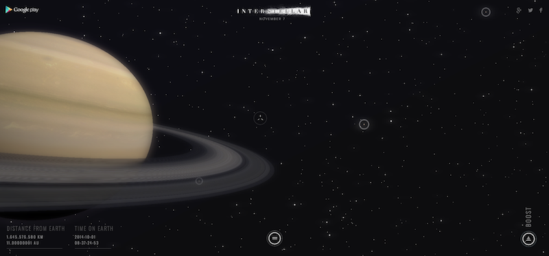 ‘Interstellar’ Viral Site And Kip Thorne Featurette Michael Lee, October 1, 2014October 1, 2014 Paramount Pictures is cranking up the marketing machine for their upcoming film Interstellar. Directed by Christopher Nolan, the film takes place in the future where Earth is becoming uninhabitable, and a group of scientists are sent off to the far reaches of space to find a new world where humans can continue to thrive.The studio recently announced that the film would be released three days before its original release date. After watching the final trailer, we now know that Interstellar will be available in multiple formats ranging from IMAX 70mm, 70mm, 35mm, and other formats like 4k and digital.Now to further promote the marketing of the film, a brand new interactive site has been launched, and a new educational featurette featuring Kip Throne has been released. Hit the jump to see them both. Interstellar With Google allows you to travel space with the characters from the film. There are three different ways to explore the site.In “Space Hunt,” you will navigate the depths of outer space for Interstellar discoveries. Come back often and you may find more.“Time Capsule” and “Transmission” are currently locked, and are both set to be launched a little over a month from now. The names of those games seem pretty self explanatory, so we’ll have to see what the Paramount marketing has in store for us.We also have a new featurette the focuses on Kip Throne. Throne’s scientific research was the basis for the film’s space exploration. It shows how closely Throne and director Chirstopher Nolan worked together during the course of the film.Starring Matthew McConaughey, Anne Hathaway, Casey Affleck, Jessica Chastain, David Gyasi, Ellen Burstyn, Bill Irwin,David Oyelowo, Wes Bentley, Michael Caine, and John Lithgow, Interstellar arrives in theaters November 7 Viral Marketing Christopher NolanInterstellarParamount Pictures