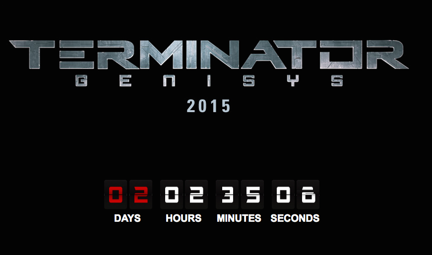 He Is Back: Countdown For New “Terminator Genisys” Trailer Connor Behrens, December 2, 2014December 2, 2014 The official site for SkyDance Productions, Paramount Pictures, and Warner Bros. Pictures’ highly anticipated sequel, Terminator Genisys, has come online. A countdown to the trailer debut along with a motion poster have also been revealed. Hit the jump to check it out!The site displays a living poster, which turns into the countdown. The poster starts off as the iconic image of the T-800 model Terminator, but the machine’s face quickly degrades to dust, and as the dust accumulates at the bottom, it essentially becomes an hourglass sand timer, with the trailer looking to debut this Thursday.Fans of the revered sci-fi franchise have been waiting for the viral marketing to finally begin, with details of the film being revealed a few weeks ago in ‘Entertainment Weekly’.Starring Arnold Schwarzenegger, Jason Clarke, Emilia Clarke, Jai Courtney, J.K. Simmons, Dayo Okeniyi, Byung Hun Lee and Matt Smith, ‘Terminator Genisys’ is directed by Thor: The Dark World‘s Alan Taylor from a screenplay by Laeta Kalogridis and Patrick Lussier.You can check the website out for the official trailer on Thursday!Terminator Genisys opens July 1st, 2015. Viral Marketing Arnold SwarzeneggerCountdownParamount PicturesSite NewsTerminatorTerminator GenisysViral marketingWarner Bros